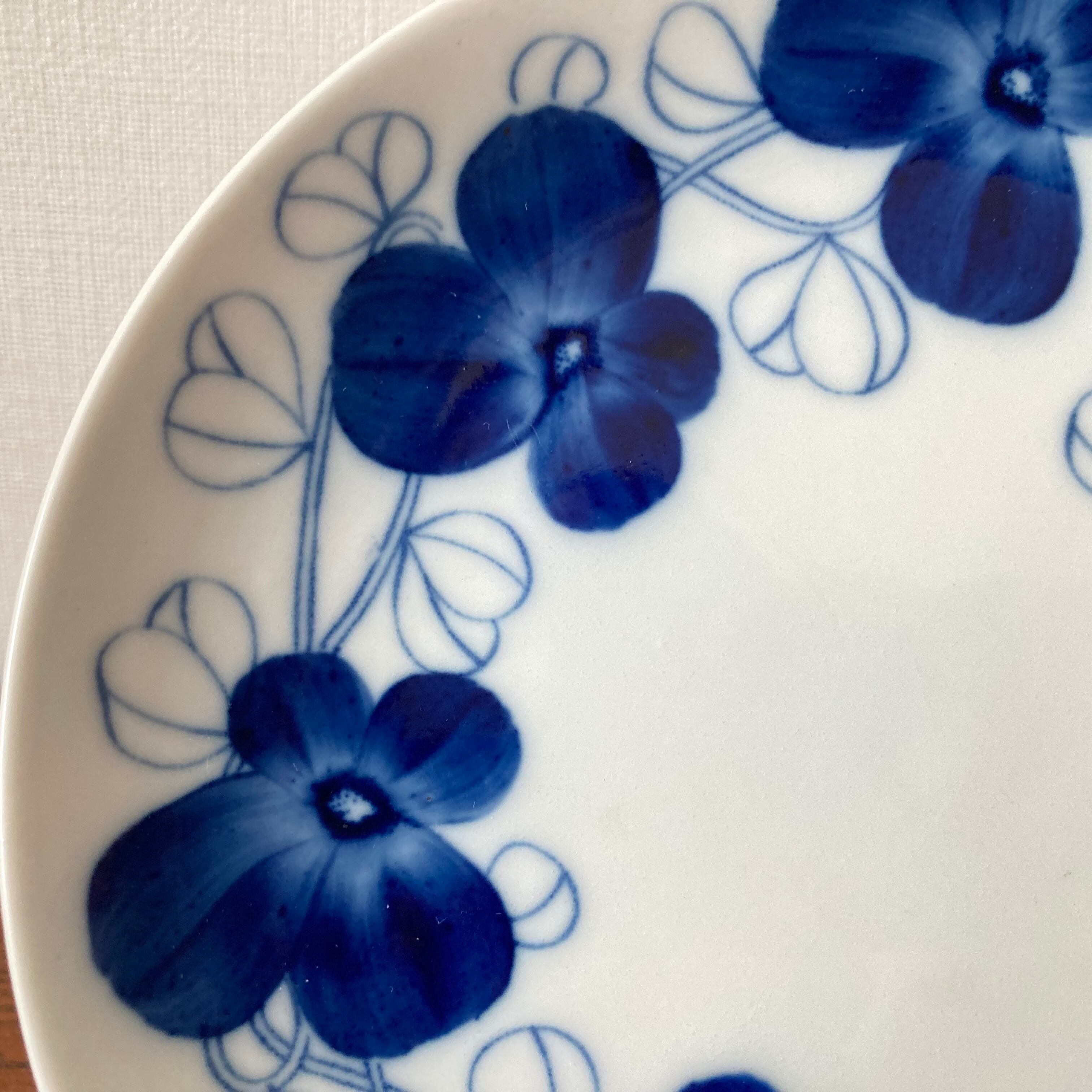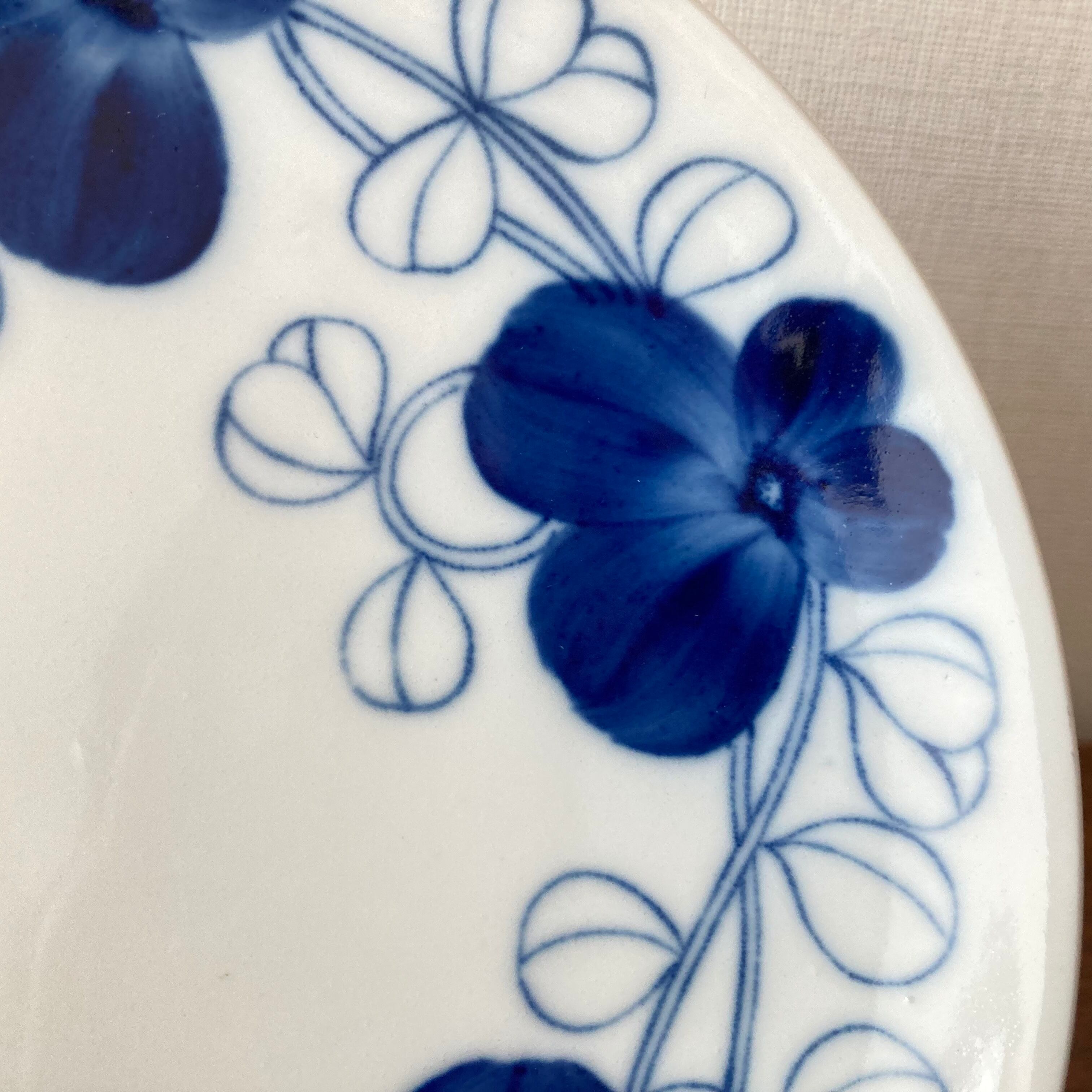 葉の部分はプリント、花の部分は絵付師による